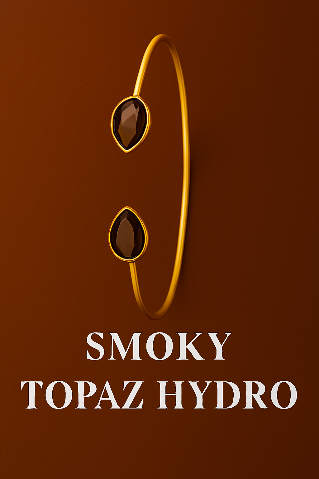 This elegant openable bracelet showcases stunning SMOKY TOPAZ HYDRO stones, meticulously handcrafted by skilled artisans in Jaipur, India. Enhanced with over 18K gold plating, it offers a sophisticated touch that seamlessly complements both Indian and Western attire.